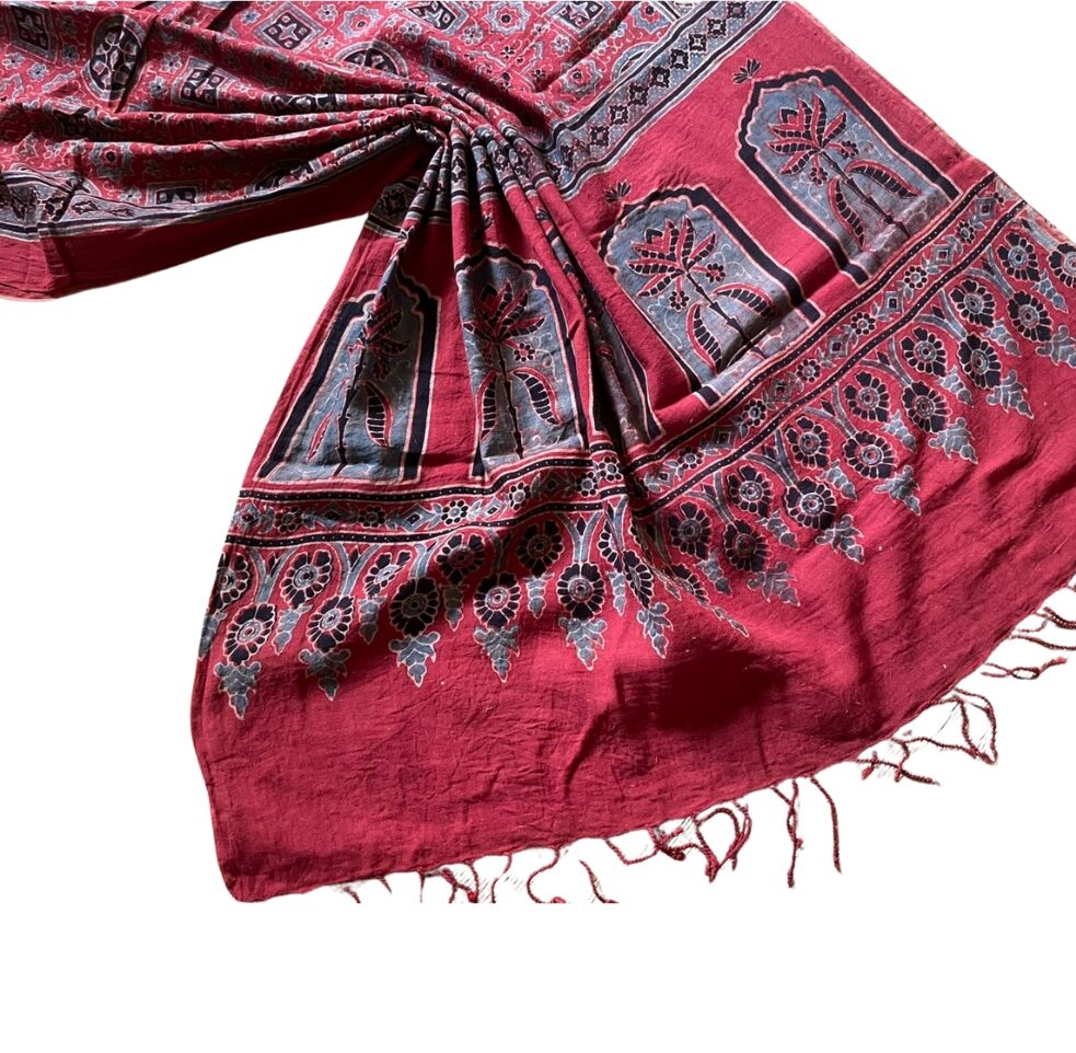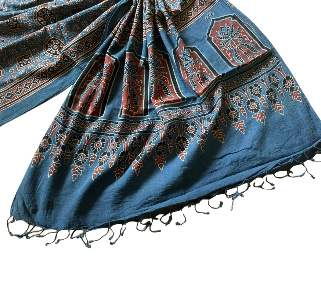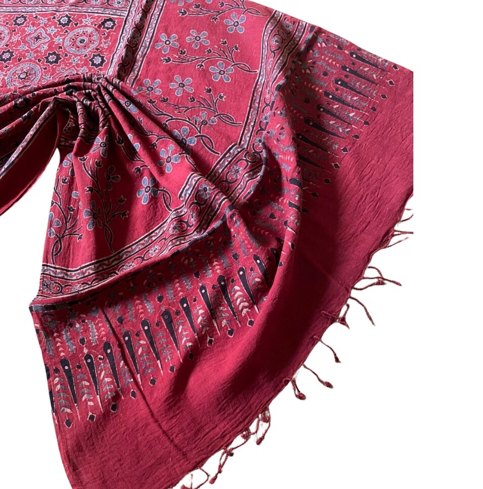 Cotton Ajrakh Print Scarf – Handloom