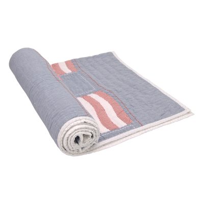 This quilt is made with American flag design on top layers with a touch of Kantha running embroidery in Red and white colour.