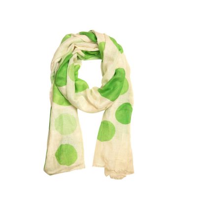 Description: Printed Linen scarf with Green Polka Dot