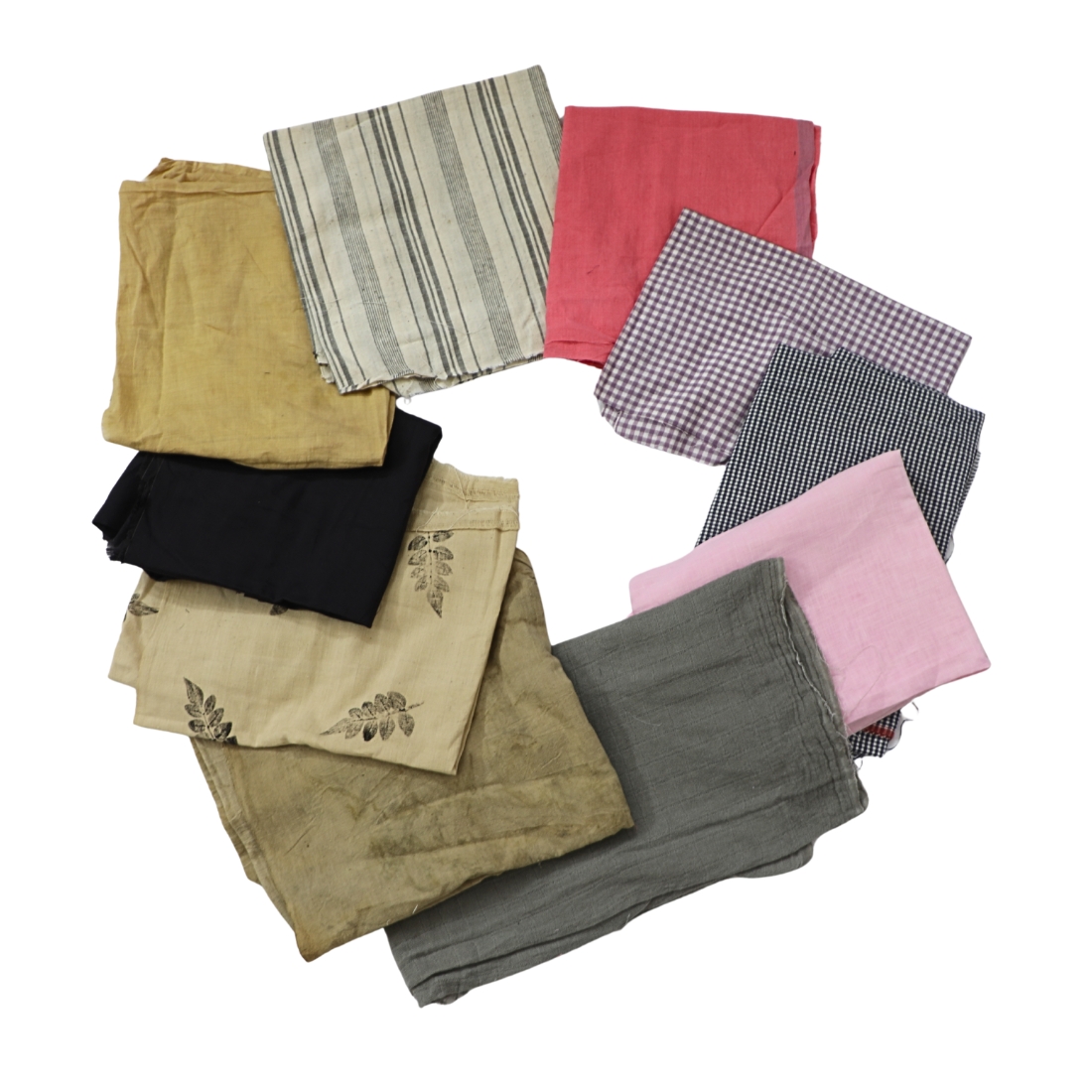 - Fabric bundle consist different kind of fabrics like organic cotton solid or print, linen , solid cotton and prints , Natural dyed cotton fabrics .