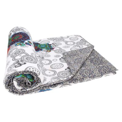 Description: This Floral Print Kantha Quilt is made of two layers of cotton by 100% cotton filling. Top side is beautiful black and white flower design with a touch of multicolour bright colour flowers and multicolour print pattern on the reverse side. kantha stitch is used for quilting.