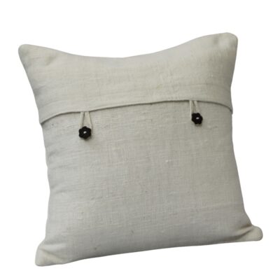 Simple & Adorable! This handmade cushion cover is made of handspun and handwoven cotton fabric and beautiful handmade coconut shell buttons at front.Every piece is hand cut and sewn. This cushion cover will surely add a charm to any home.