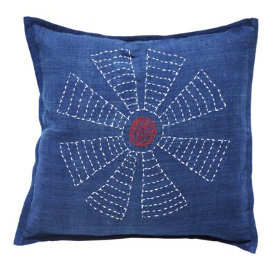 Simple & Adorable! This Indigo Kantha Cushion Cover is made of handloom cotton and beautiful kantha work is done by hand. Every piece is hand cut and sewn.