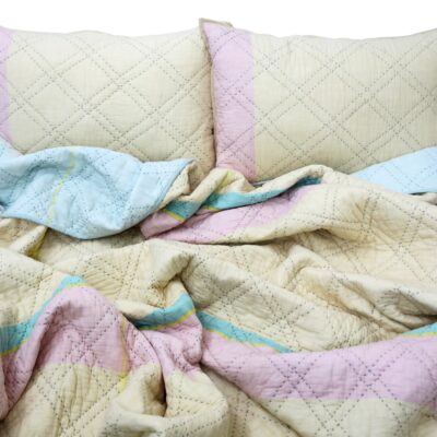 There was a time when things were made to last. Our quilts are inspired by the same thought. Our marshmallow collection quilts refreshes your bedroom and gives a romantic feel to it. Beautiful Kantha quilt made in 100% Handwoven Cotton Fabric with minute hand stitches in Diamond pattern in pastel shades. These are reversible quilts and can be used both sides.Great combination of colour and geometric elements like stripes and just a perfect lightweight quilt set king / queen / twin in all sizes.
