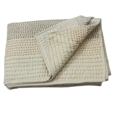 Product : Linen Throw Blanket – Ivory Elegance with Brown Kantha Embroidery