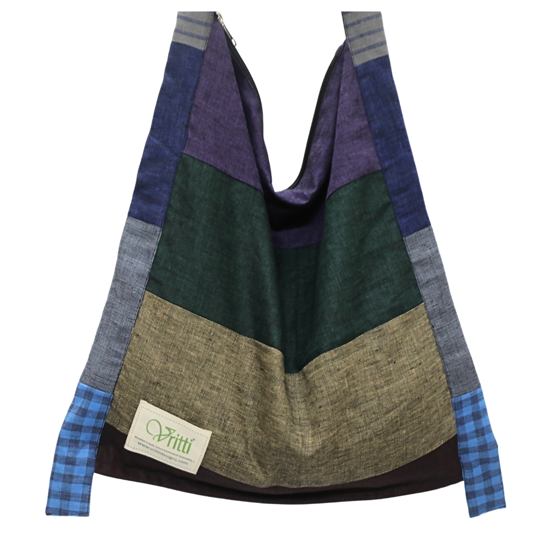 - Patchwork Sophistication: Introducing our Multicolour Bag for Shopping, meticulously crafted by using patchwork from remaining linen fabric from produtcion.