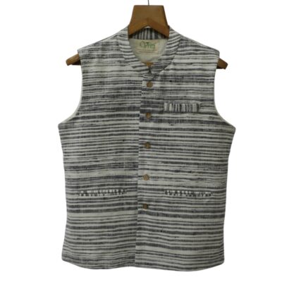 Description: This Nehru Jacket is made with 100% cotton fabric which is made of hand spun yarn which is then handwoven on handloom.