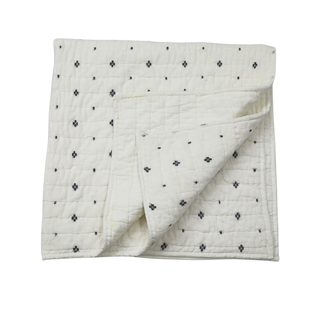 BQuilt for New Born made in 100% Handwoven Cotton jamdani Fabric with minute hand kantha stitches .Back side is solid white with kantha stitches.