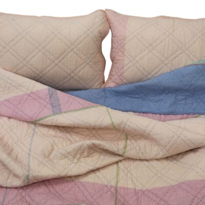 There was a time when things were made to last. Our quilts are inspired by the same thought. Our marshmallow collection quilts refreshes your bedroom and gives a romantic feel to it. Beautiful Kantha quilt made in Handwoven Cotton Fabric with minute hand stitches in Diamond pattern in pastel shades. These are reversible quilts and can be used both sides.Great combination of colour and geometric elements like stripes and just a perfect reversible cotton quilt set which comes in all king / queen / twin sizes.