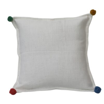 Simple & Adorable! This cushion cover with pom pom is made of handspun and handwoven cotton fabric and beautiful multicolor pom pom at all four corners. Pom Pom are made from post consumer recycled cotton.Every piece is hand cut and sewn. This cushion cover will surely add a charm to any home.