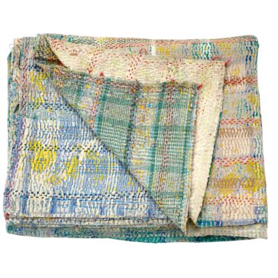 - Description: Vintage Kantha Quilt is approximate 70-80 years old. These vintage kantha quilts are made by rural women in their spare time at home. Women use to do make these kantha quilts by using old sarees layers and then do intricate kantha work . These are one of the pieces.