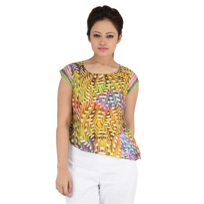 Digital Print multicolour cotton assymetrical top pefect to go with any bottom.